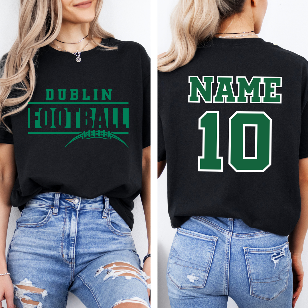 🏈 Dublin Football League All-Star Gear is HERE! 🎉 Show your support at the big game in Indianapolis with fully customizable spiritwear! Choose from tees, hoodies, and more – then make it your own by adding your player's name, number, or just their name for a personal touch. 🏆